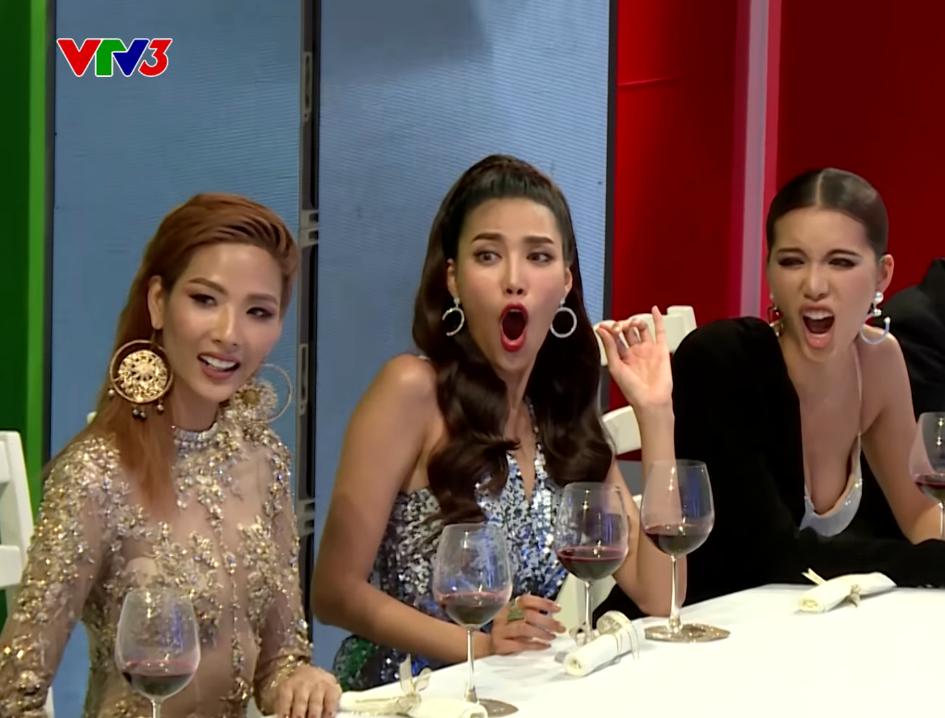Chứng kiến cảnh Quỳnh Như "càn quét" bàn tiệc và làm đổ ly rượu, Lan Khuê đã thét lên một tiếng đầy kinh ngạc. Tuy nhiên, hành động của Hoa khôi Áo dài 2014 lại gợi cho nhiều khán giả nhớ tới biểu cảm tương tự của đàn chị Hồ Ngọc Hà tại The Face mùa đầu.