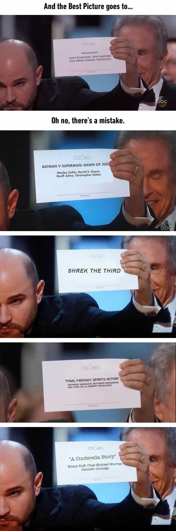 Sự cố công bố nhầm giải Phim hay nhất trở thành "trò cười để đời" trong lịch sử lễ trao giải điện ảnh danh giá nhất hành tinh.