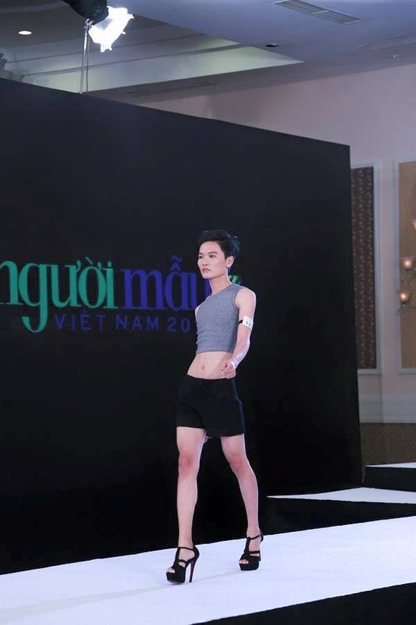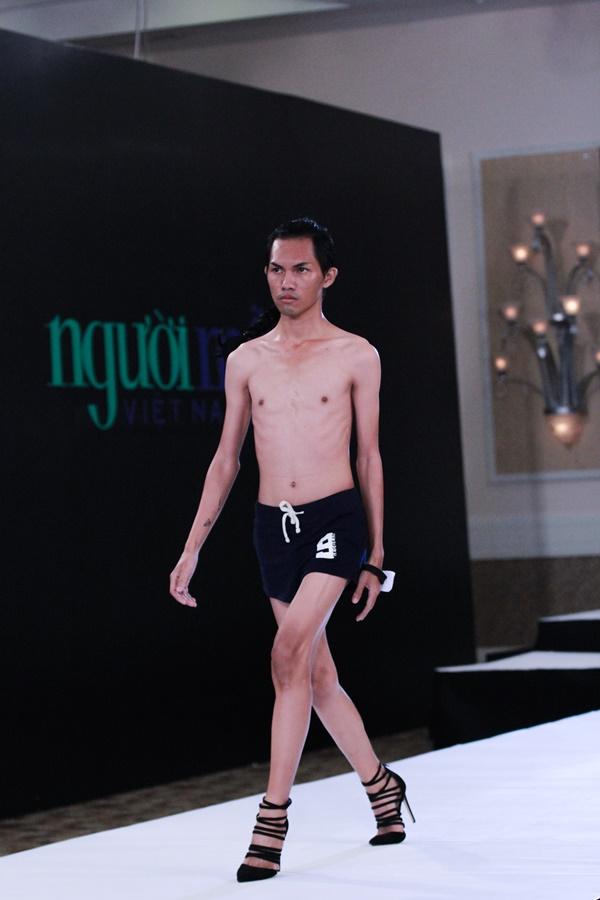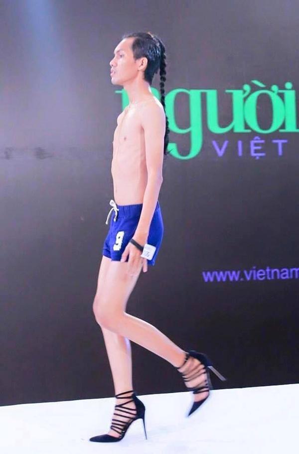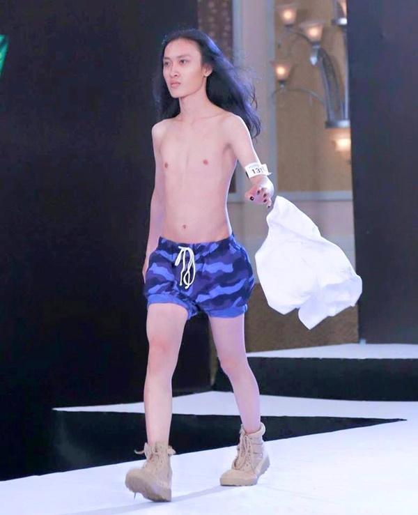 Một số thí sinh nam giới gây chú ý bằng cách đi guốc cao, mình dây thanh mảnh.