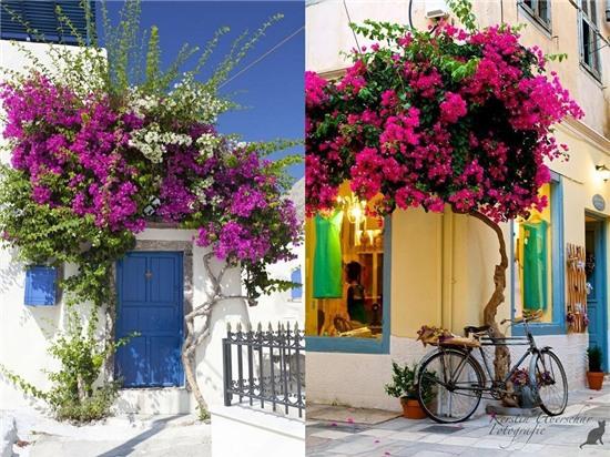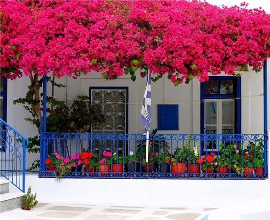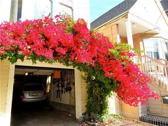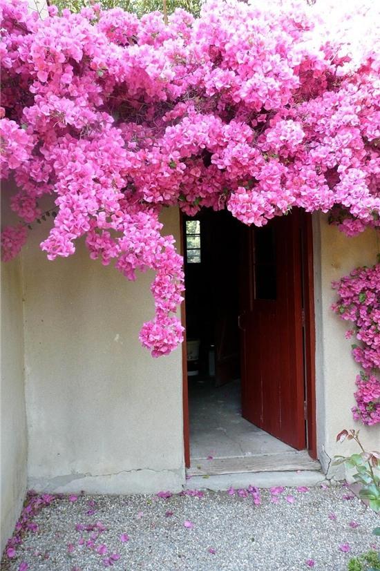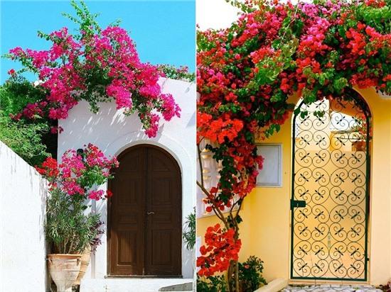 Tạo những giàn hoa giấy rực rỡ trên mái hiên hay vòm cửa cũng là một cách khác mà bạn có thể áp dụng cho ngôi nhà mình.