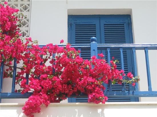 Dãy lan can bớt đi vẻ đơn điệu chỉ với những chùm hoa giấy xinh xinh, tươi sắc.