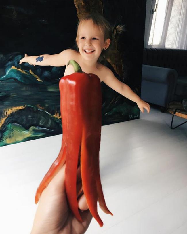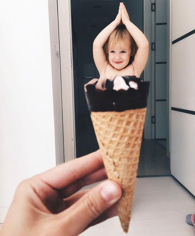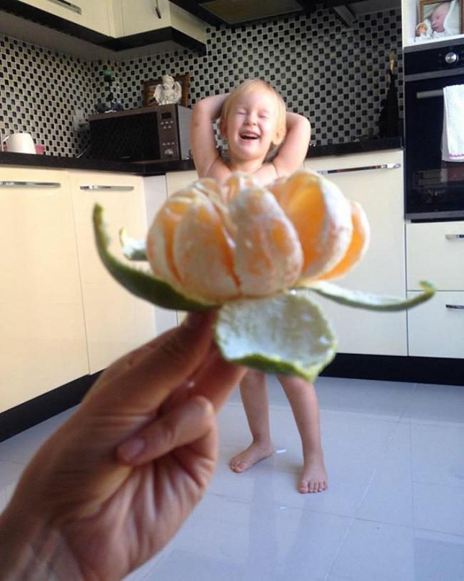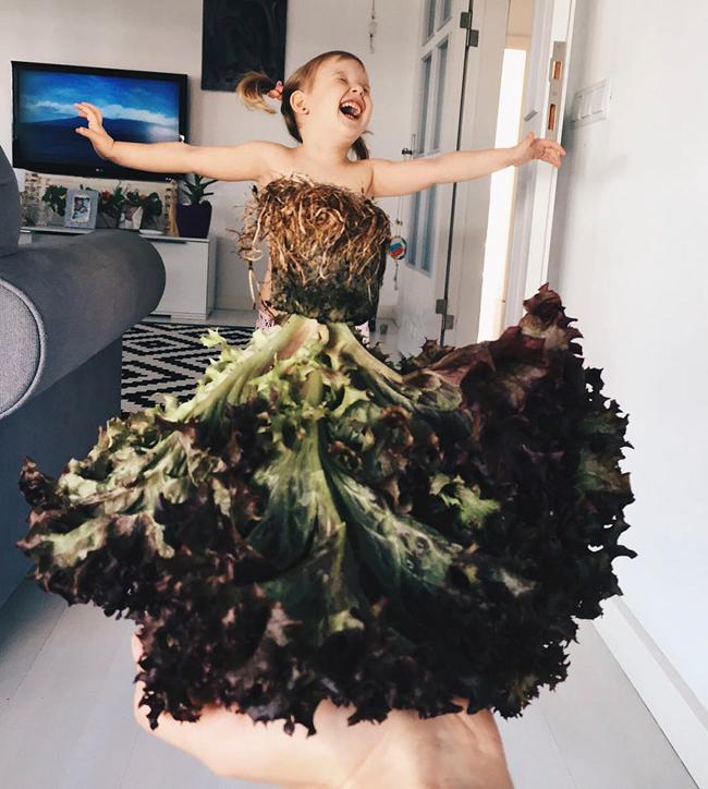 Đến quả cam mà mẹ còn biến thành váy được cơ đấy.