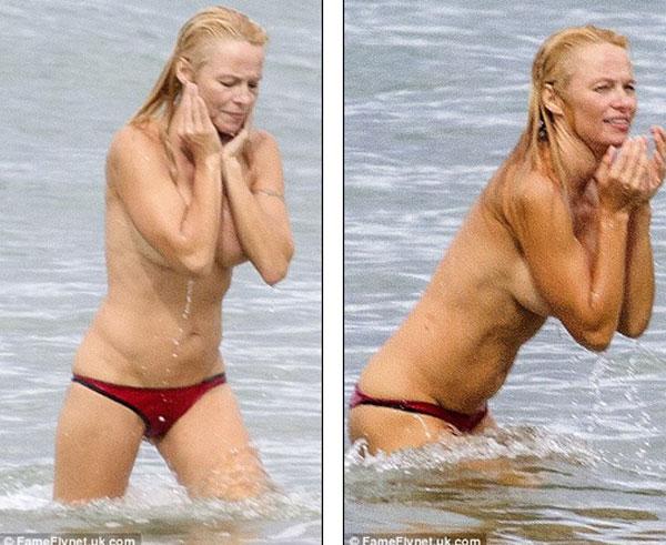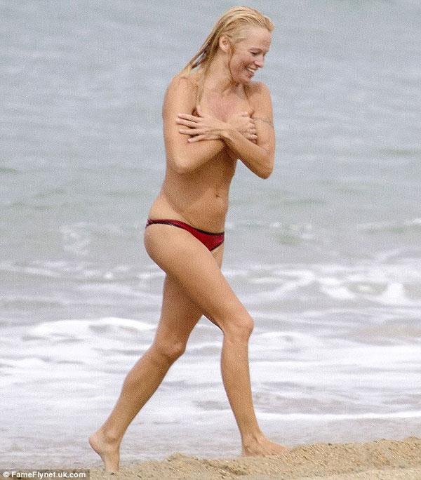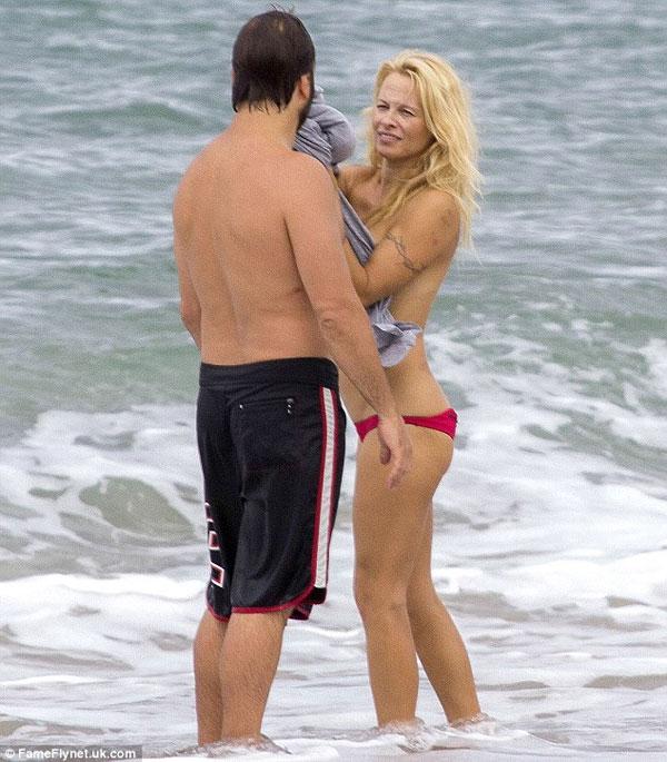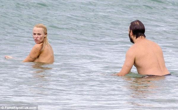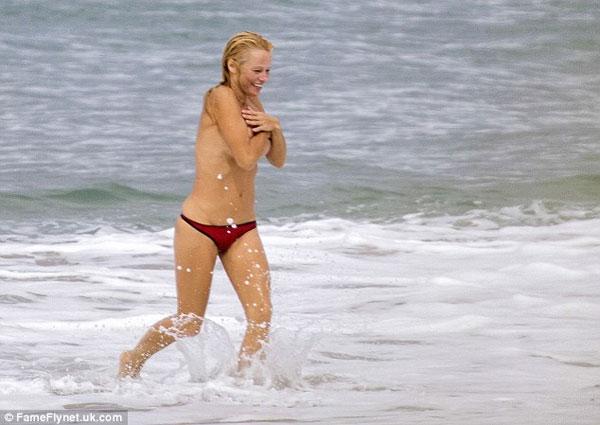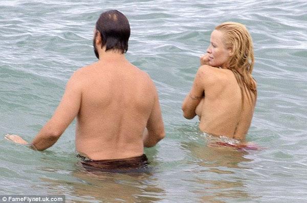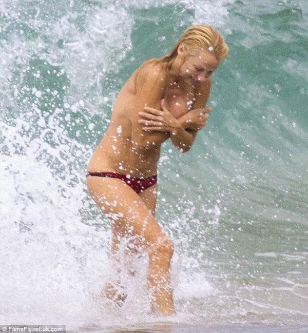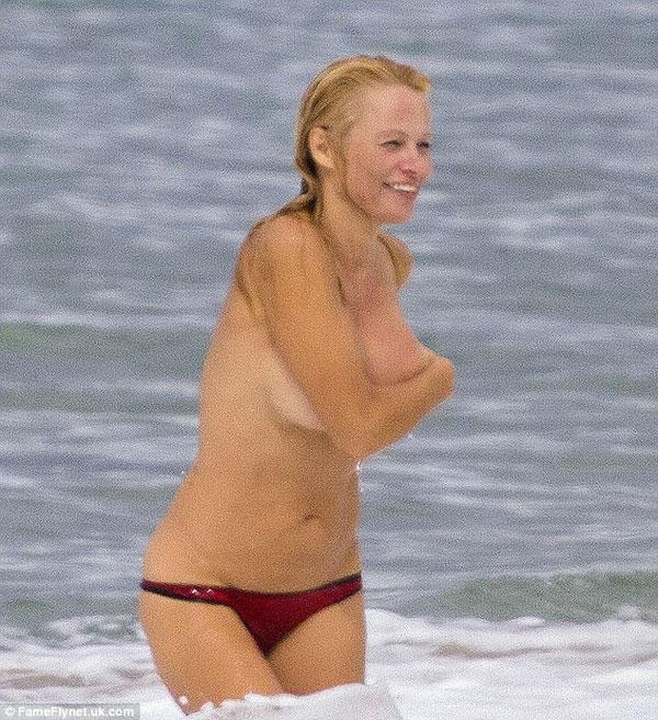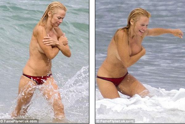 Mới đây, ngôi sao Pamela Anderson có kì nghỉ trên biển Biarritz của Pháp với bạn trai Rick Salomon. Mặc dù đã 46 tuổi nhưng Pamela Anderson vẫn sở hữu thân hình nóng bỏng, đặc biệt cô táo bạo để ngực trần nhảy sóng tắm biển làm nhiều tay săn ảnh xung quanh "không thể chớp mắt". Và khi thấy mình bị xăm soi, cô phải liên tục dùng tay che ngực để tránh những pha chụp cận cảnh vào vòng một cỡ bự.
