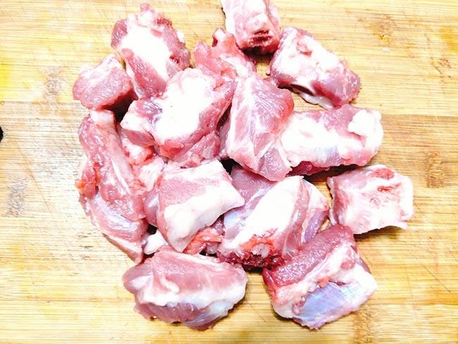 - Sườn nên chọn miếng có rãnh xương nhỏ, dày thịt và có một lớp mỡ mỏng sẽ ngon hơn. Đem rửa thật sạch sau đó thấm khô nước và đem chặt miếng vừa ăn.