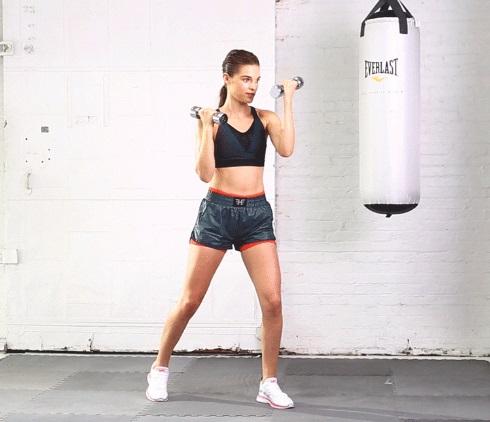- Cầm quả tạ bằng tay trái và đưa về phía ngực, đẩy khuỷu tay về phía sau rồi đẩy lên phía trước.