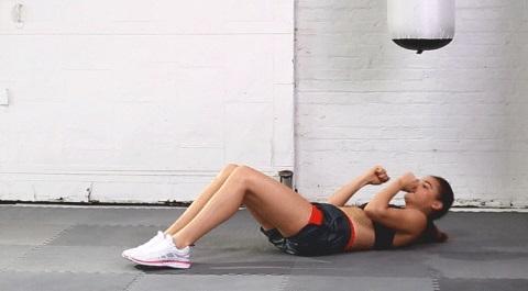 - Đấm tay về phía trước liên tục 4 cái, xen kẽ nhau, sau đó nằm ra sàn, chân vẫn co lại.