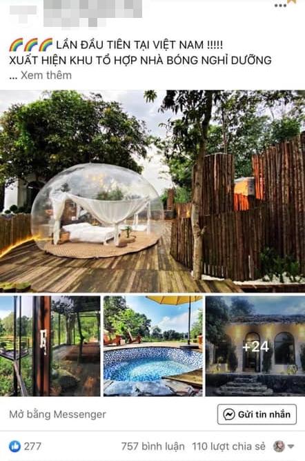 Ảnh quảng cáo "khách sạn bong bóng" nổi tiếng mà trang page villa đăng tải.