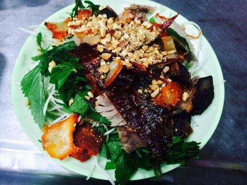 Thật thiếu sót khi lượn lờ hồ Gươm mà lại “quên” không ghé chân để thưởng thức món nộm bò khô. Một đĩa nộm sẽ bao gồm gân bò, gan sấy, mề quay cùng các loại rau củ thái sợi và từng miếng bò khô giòn tan. Đây là một trong những món ăn vặt “nằm lòng” của ẩm thực phố cổ người Hà Thành.
