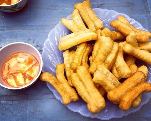 Thông thường, quẩy hay được ăn kèm với phở, bún nhưng ở Hà Nội quẩy còn là món ăn vặt riêng được chấm kèm với giấm ớt. Bạn có thể thưởng thức món ăn “quen mà lạ” này ở Hàng Điếu, Hàng Bông, Đào Duy Từ với giá 20k một đĩa khoảng 10 cái.
