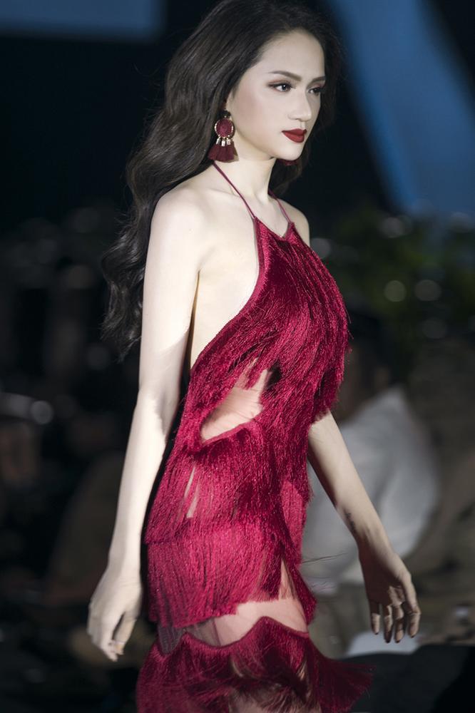 Dù không phải người mẫu chuyên nghiệp nhưng Hương Giang catwalk rất tự tin.