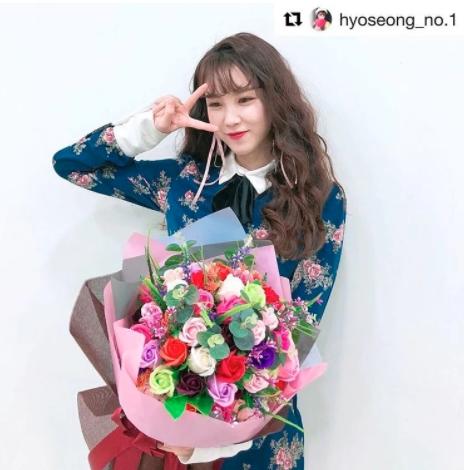 Choáng ngợp với Hyoseong (Secret): toàn hoa là hoa khi mặc váy hoa lại ôm bó hoa to đùng.