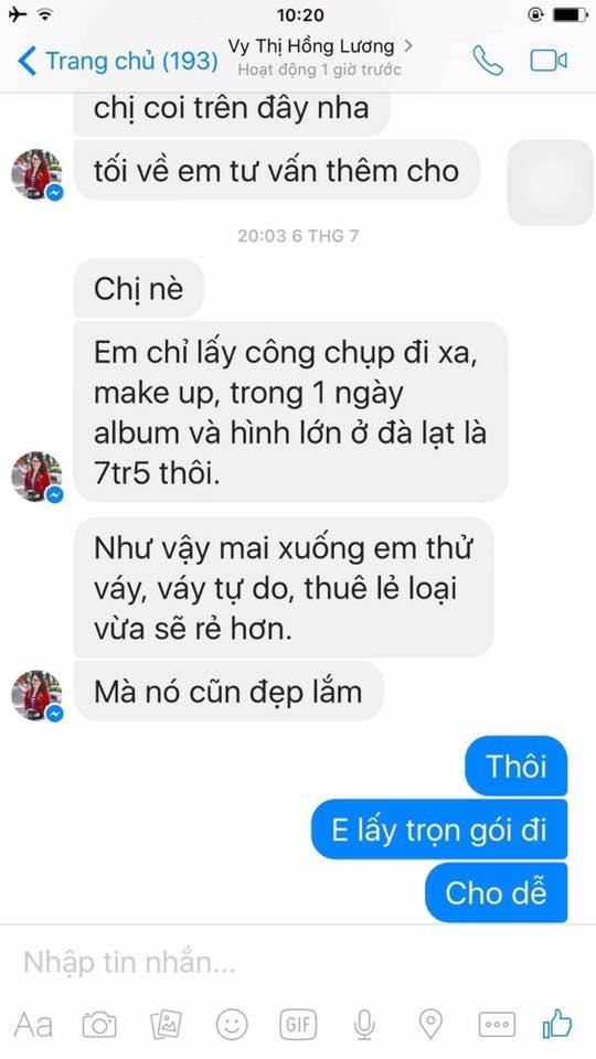 Ban đầu, Vy đề nghị lấy giá 7 triệu rưỡi cho cả album, nhưng chị H. đã muốn lấy trọn gói.