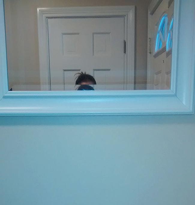 Nhờ chồng lắp gương và anh ta nghĩ ai cũng cao như anh ấy vậy.
