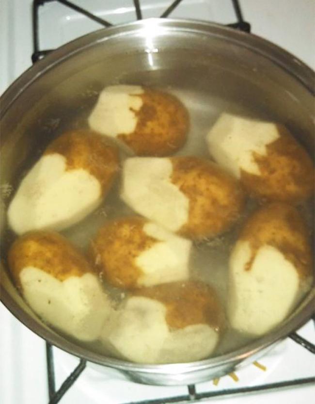 Kết quả khi dặn chồng gọt một nửa khoai vào nồi.