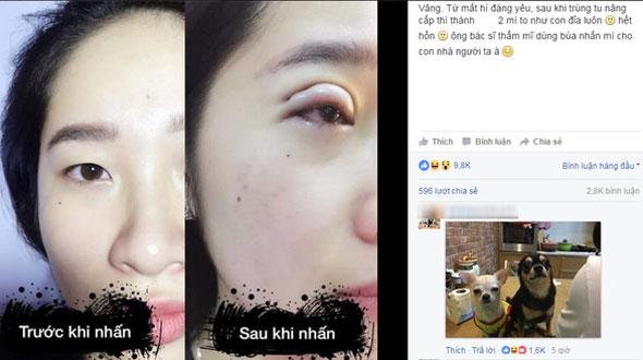 Mặc dù cảnh báo nhiều, chê bai nhiều, tranh cãi cũng nhiều nhưng nhu cầu tân trang nhan sắc của phái đẹp chưa bao giờ có dấu hiệu ngừng lại. Ngày càng nhiều thẩm mỹ viện, trung tâm chăm sóc sắc đẹp, spa, học viện… mọc lên như nấm, khiến chị em cũng cảm thấy hoang mang khi muốn chọn mặt gửi vàng. Những chuyện giật gân liên quan đến sự cố thẩm mỹ vẫn luôn thu hút sự chú ý của đông đảo cư dân mạng, thế nên mới đây, khi một cô gái trẻ đăng ảnh nhấn mí của mình lên mạng, hình dạng kinh khủng của đôi mắt sau chỉnh sửa đã khiến hàng chục nghìn người choáng váng, truyền tay nhau chia sẻ với tốc độ chóng mặt: