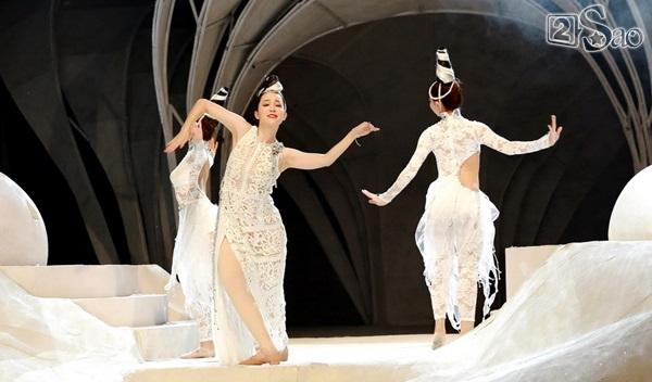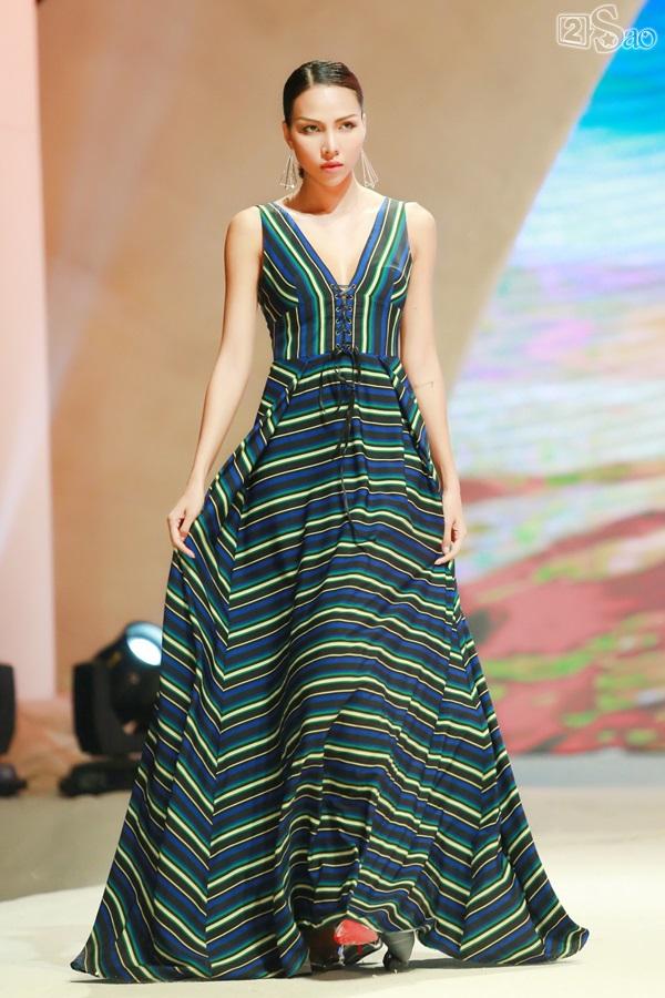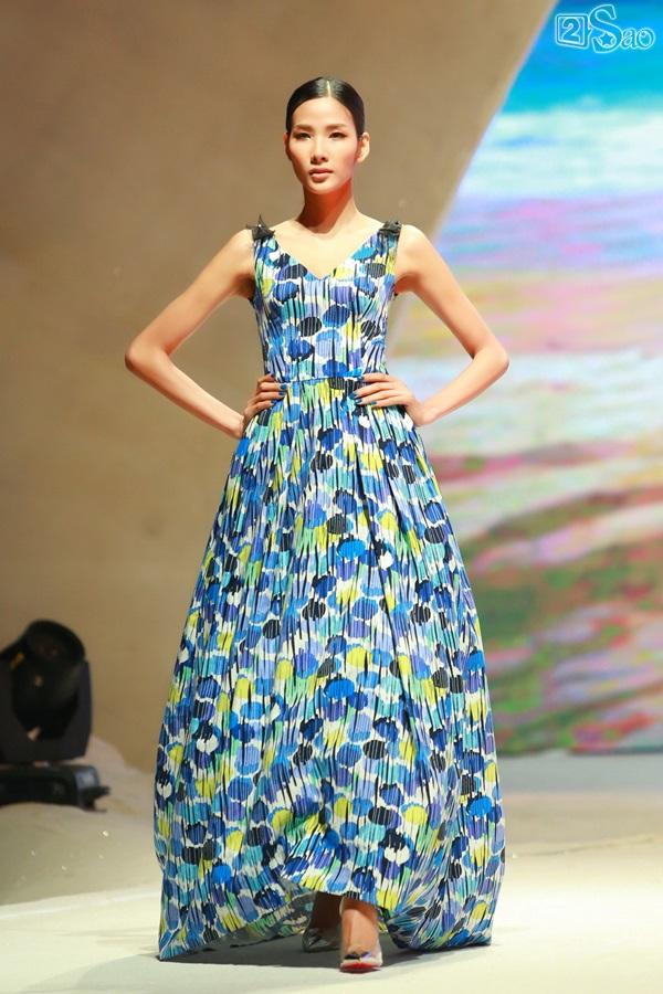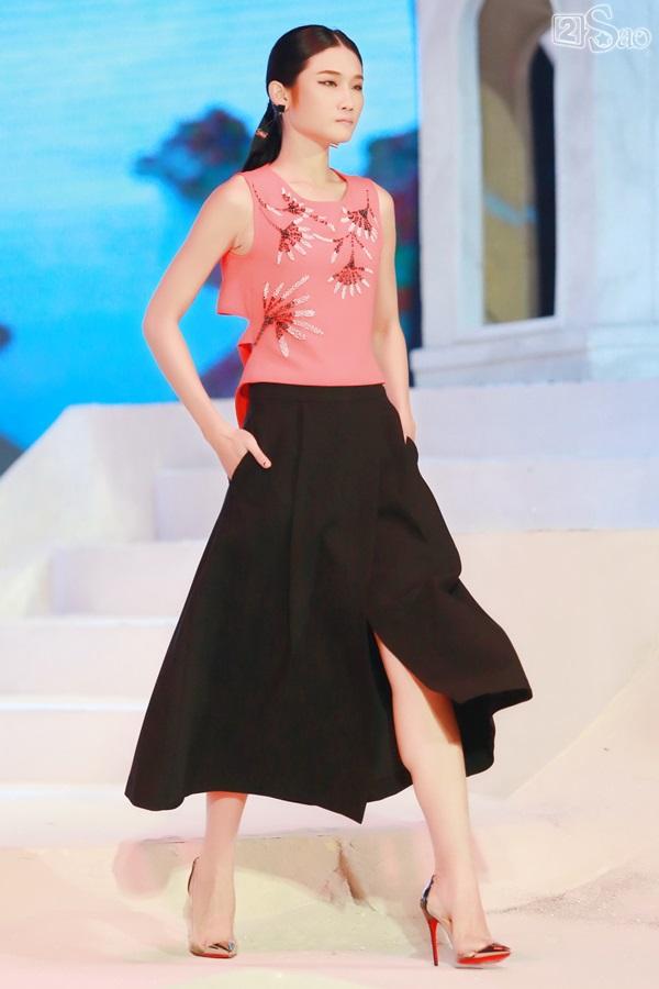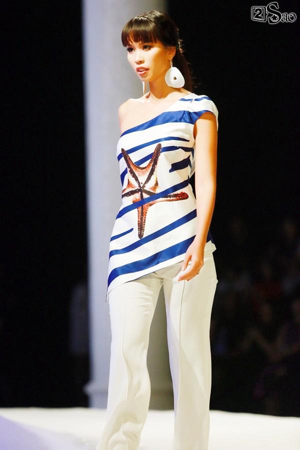 Toàn bộ sân khấu được trang trí như môt ốc đảo thu nhỏ với sàn catwalk phủ cát lấp lánh, màn hình LED diện tích lớn phía sau đại diện cho không gian như biển cả, bầu trời..., dàn đèn công suất cao thay thế cho mặt trời còn "nhân vật chính" là những chú sứa khổng lồ nằm ngay phía trung tâm. Thông qua sự biến đổi của trang phục, âm thanh và ánh sáng, "The Dreams of Santorini" kể về câu chuyện tình yêu của biển cả. Đó là câu chuyện của một nàng sứa từ lúc bước ra từ trong bụng mẹ đến khi trưởng thành rồi biết rung động trước tình yêu.