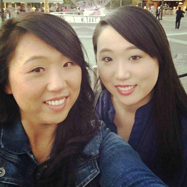 Cặp chị em chỉ khác nhau về làn da và cách trang điểm. Ảnh: Katey.