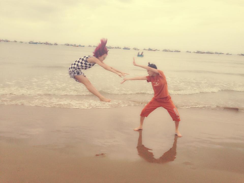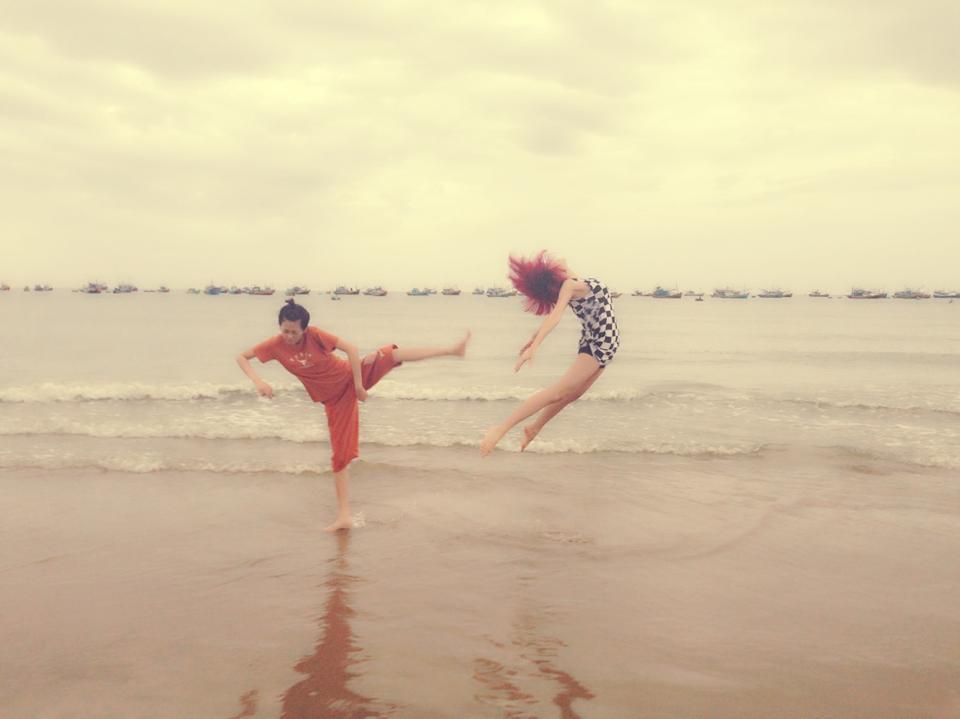 Chị em Thiều Bảo Trang vui đùa cùng sóng biển và hài hước với dòng status