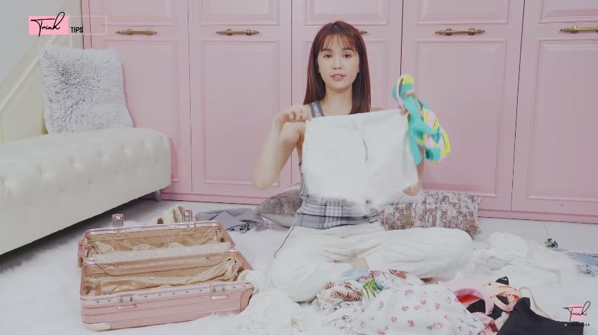 Lấy lý do là xếp đồ không đẹp để cuộn đồ vào vali nhưng đây thực ra là 1 tip rất hay để tiết kiệm diện tích khi xếp đồ đi du lịch. Khuyết điểm là đồ dễ bị nhăn thôi chứ tha hồ nhét đồ đấy nhé!