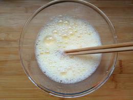 - Đánh tan trứng, thêm nước ấm gấp 1.5 lần so với chỗ trứng, khuấy đều.