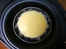 - Thêm mức nước thấp nhất vào nồi cơm điện. Sau đó cho bát trứng vào, đậy vung, hấp trong vòng 15 phút.