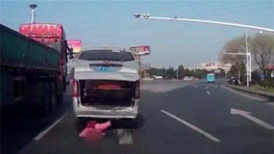 Đầu tháng 3 năm nay, một cậu bé 2 tuổi ở Giang Tô, Trung Quốc cũng may mắn thoát chết sau khi bị rơi khỏi một chiếc ô tô đang lưu thông trên đường.