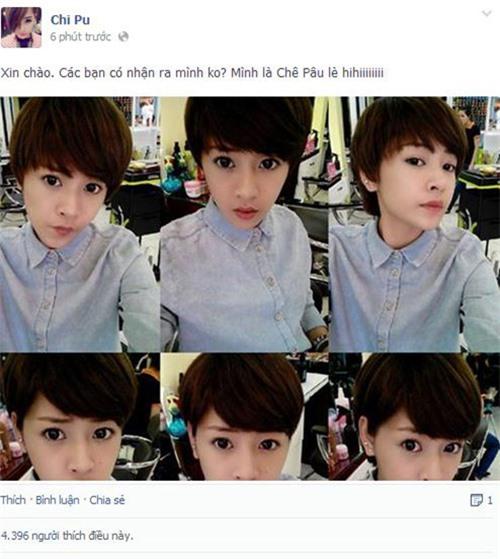 - Chi Pu vừa tung lên trang mạng xã hội hình ảnh lạ lẫm của mình với mái tóc ngắn cá tính. Sự thay đổi này nhanh chóng nhận được gần hàng chục ngàn lượt like (thích).