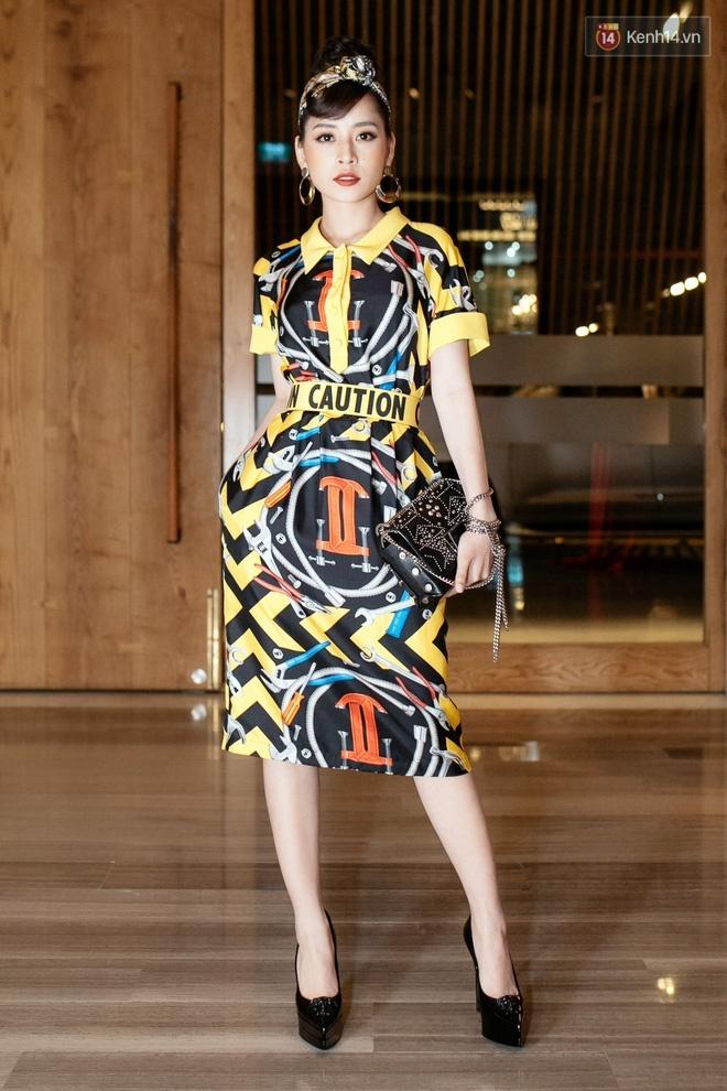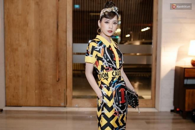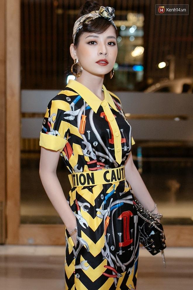 Bộ cánh nổi bật được Chi Pu phối cùng túi xách Jimmy Choo và turban khá ăn ý.