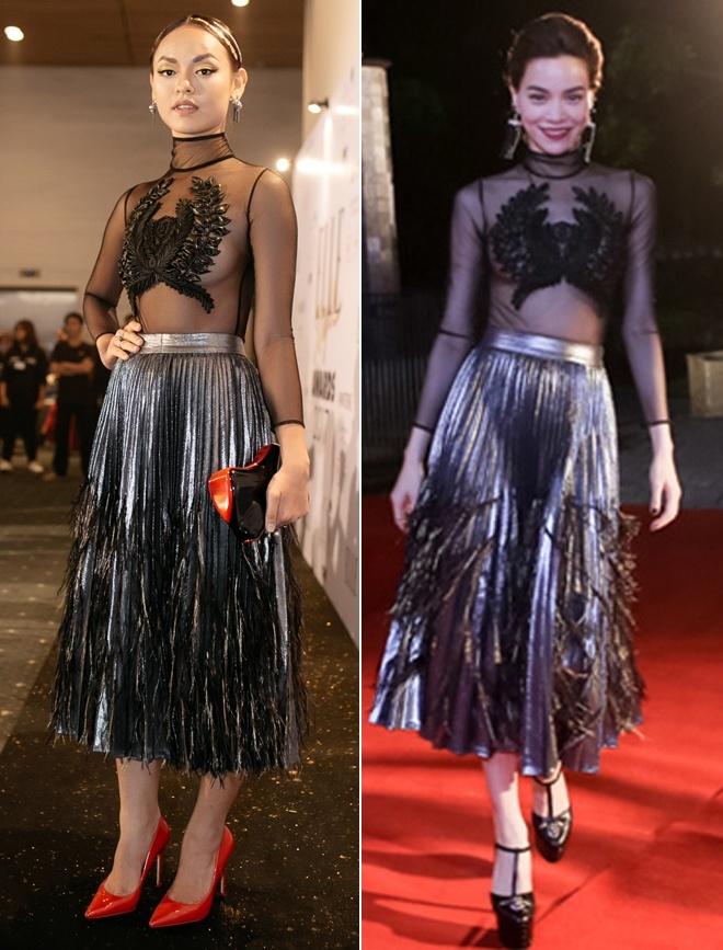Cả hai có cách phối đồ và làm đẹp khá tương đồng. Tuy nhiên, dáng vóc của nữ diễn viên và nàng Hậu lại tạo nên sự khác biệt khá lớn!