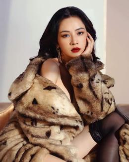 Layout trang điểm son môi đỏ rượu cùng kiểu tóc xoăn nhẹ nhàng kết hợp thần thái cực đỉnh của Chi Pu tạo nên những shoot hình mà người xem khó thể rời mắt.