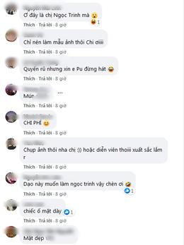 Dưới bài đăng, rất nhiều lời khen ngợi trước bộ ảnh xuất sắc của Chi Pu. Tuy nhiên, không ít người lại tranh thủ "đá xéo" cô nàng: "Đẹp quá, chụp hình thôi, đừng hát nữa nha chị", "Trông khác dữ vậy", "Chỉ nên làm mẫu ảnh thôi", "Quyến rũ nhưng xin em Pu đừng hát", "Tưởng đây là chị Ngọc Trinh", "Dạo này muốn làm Ngọc Trinh vậy trời" ...