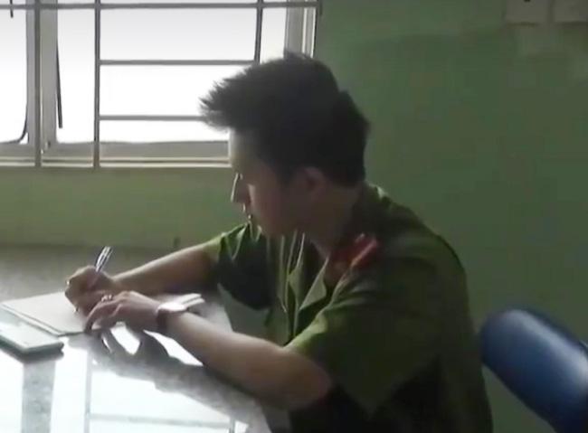 Cảnh sát đang lấy lời khai của tội phạm được chụp từ bản tin thời sự.