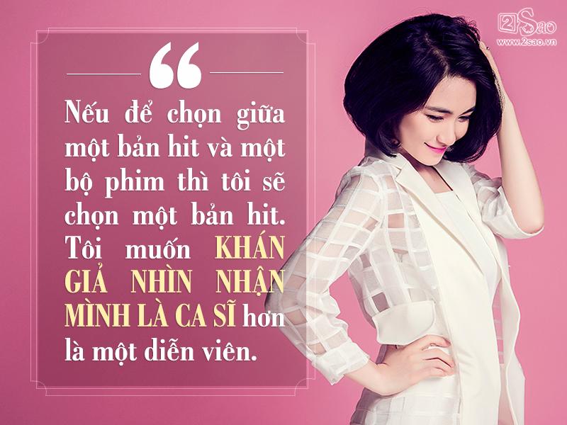Nếu để chọn một bản hit và một bộ phim thì tôi sẽ chọn một bản hit. Tôi muốn khán giả nhìn nhận mình là ca sĩ hơn là một diễn viên.