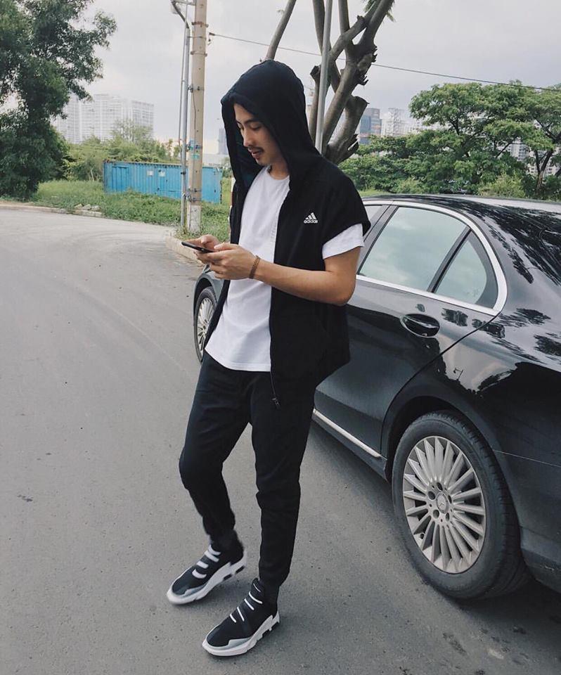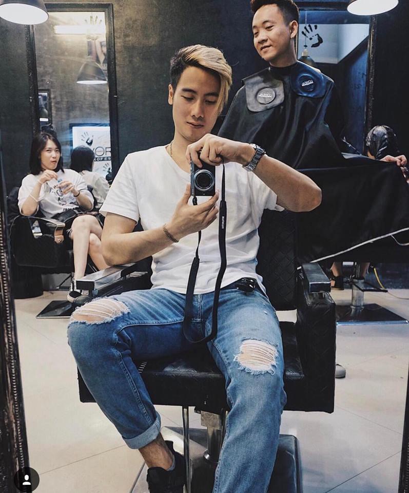 Chàng trai "triệu view" diện đồ basic thoải mái với áo phông và jeans rách.