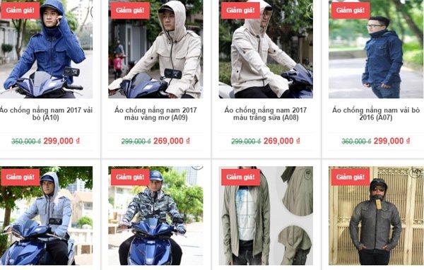 Chị Trang lý giải, áo chống nắng đặc biệt là sản phẩm cho nam giới thường có mức giá cao do nhập từ Nhật về, có thiết kế thời trang và khả năng chống các tia tử ngoại có hại cho con người. Áo có thêm mũ, phần che bàn tay khi lái xe và nhiều màu sắc khác nhau.