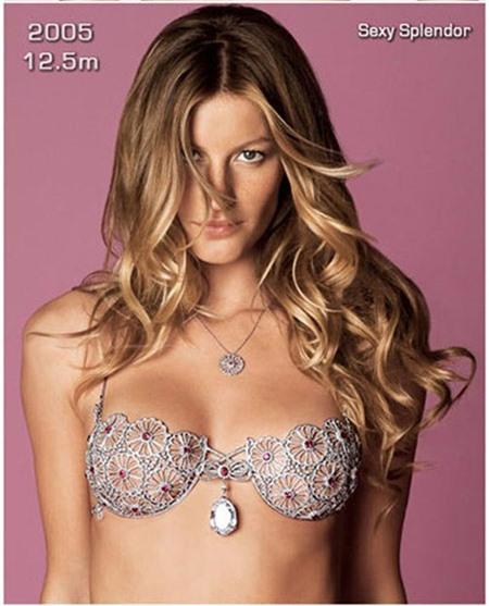 Và chiếc áo ngực đắt nhất thế giới hiện nay thuộc về chiếc Red Hot fantasy bra, sản xuất năm 2000 mà chân dài Gisele Bundchen đã thể hiện. Chiếc áo này được đính 1300 viên ngọc, trong đó có 300 cara ruby Thái.