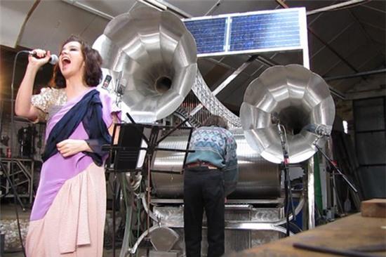 Đàn Zeusaphone còn được biết đến với những cái tên khác như Singing Tesla Coils hay Thoremin. Đây được coi là loại nhạc cụ kinh dị nhất được chế tạo vào năm 2007. Nhạc cụ này phát ra âm thanh thông qua cuộn sóng điện áp với tần suất cao. Hiện loại nhạc cụ độc đáo này được trưng bày trong các bảo tàng, ở các hội chợ thương mại, ở một số sân khấu lớn, thậm chí còn được đặt trong những ngôi nhà ma ám. 5. Kèn Branching Corrugahorn