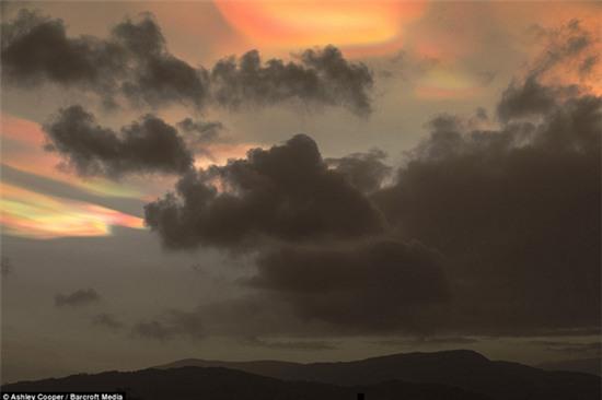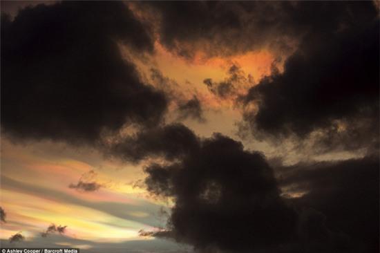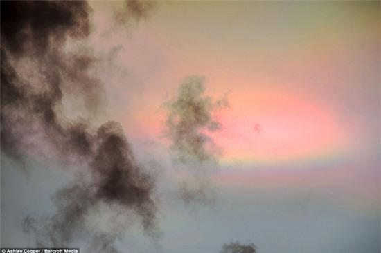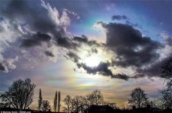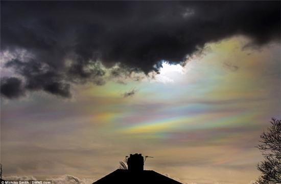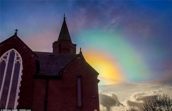 Những bức ảnh khác cho thấy những đám mây ngũ sắc làm sáng rực cả bầu trời sẩm tối ở quận North Yorkshire. Bức ảnh cho thấy một vầng màu sắc nổi lên sau mái nhà thờ.