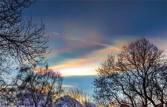 Trên bầu trời phía Bắc nước Anh xuất hiện những giải mây ngũ sắc đẹp đến ngộp thở, gọi là hiện tượng "Cầu vồng lửa".
