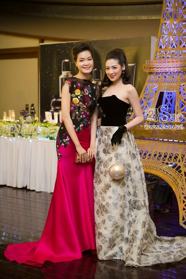 Người đẹp họ Mai kết hợp chiếc đầm đen với những khoảng hở táo bạo cùng blazer thanh lịch, đứng kế bên cô là Á Hậu Tú Anh trang điểm ấn tượng theo phong cách quý cô cổ điển.