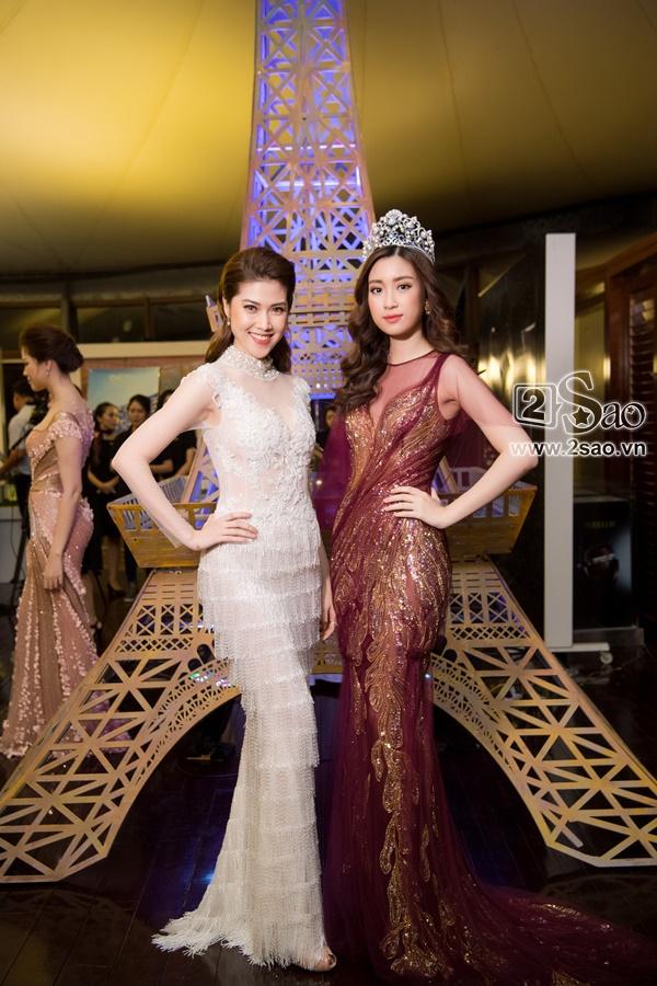 Siêu mẫu Thu Hằng khoe dáng bên Hoa Hậu Việt Nam 2016 Đỗ Mỹ Linh. Người đẹp gốc Hà Thành diện trang phục đặc trưng phong cách của Hoàng Hải với những đường cắt cúp sắc sảo và tinh tế, bắt mắt, kết hợp với các họa tiết và kỹ thuật thêu đính tỉ mỉ.