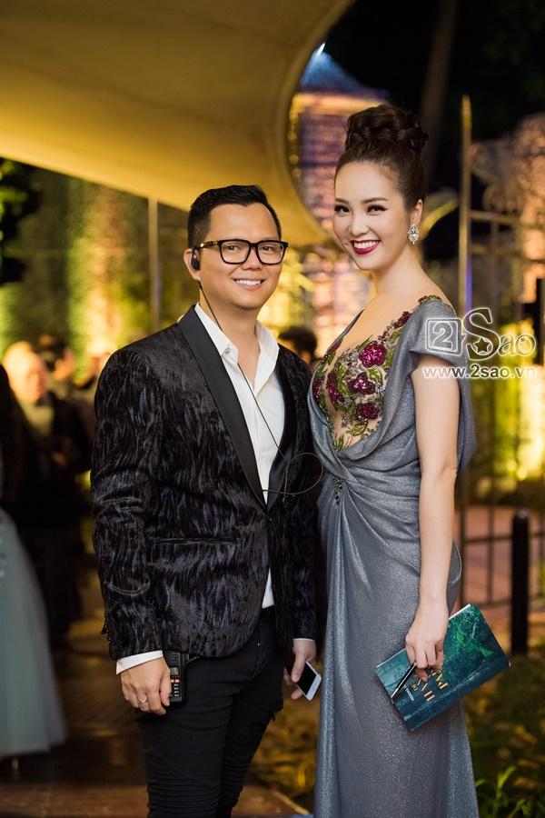 Người đẹp Thụy Vân xuất hiện lộng lẫy và ấn tượng. Cô đảm nhận vai trò MC sự kiện bên cạnh Hoa Hậu Ngô Phương Lan. Trong ảnh là Long Kan - tổng đạo diễn show diễn.