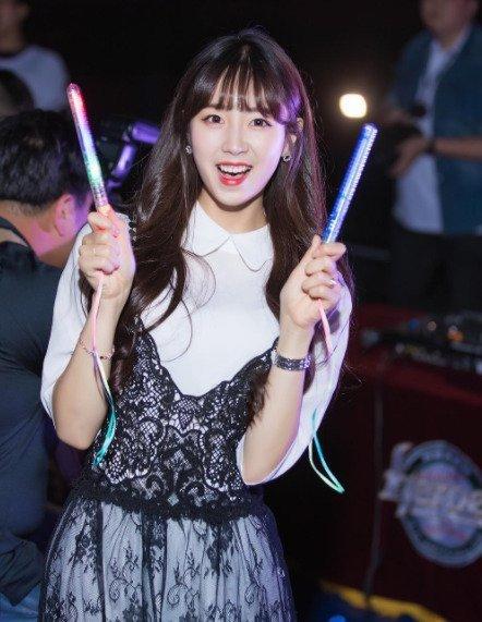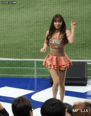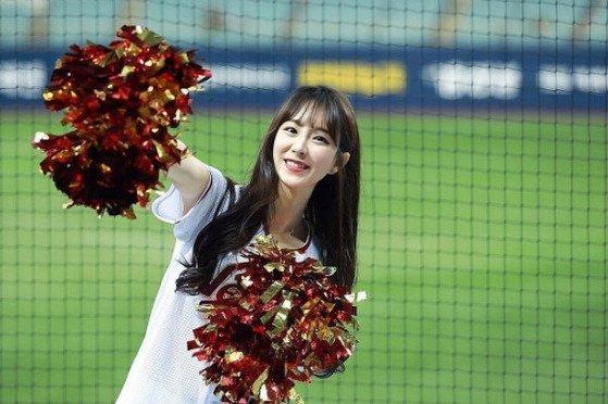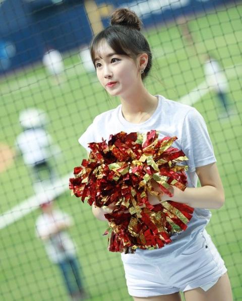 Hình ảnh Ji Hyun cổ động trong một trấn đấu bóng chày