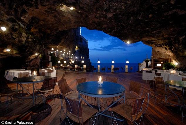 Ẩn mình trong 1 chiếc động nhỏ, nhà hàng Grotta Palazzese mang vẻ đẹp lãng mạn pha chút huyền bí đầy lôi cuốn.