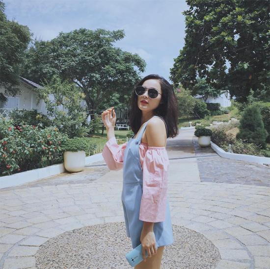 Trong những ngày hè, Hạ Vi lựa chọn phong cách trẻ trung, mát mẻ cùng