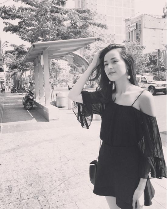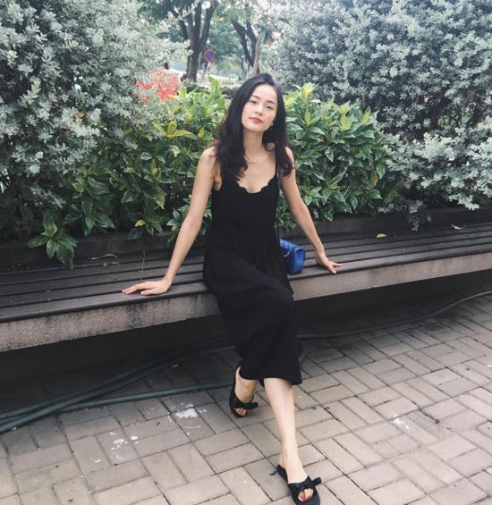 Hạ Vi chưa bao giờ bỏ lỡ những mốt thời trang thịnh hành. Váy slipdress đen giản