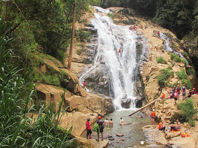 Thác Hang Cọp khá nguy hiểm nhưng hàng ngày vẫn có nhiều người đến chinh phục