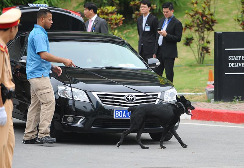 Chiều 22/5, rất nhiều chó nghiệp vụ Mỹ được đưa đến sân bay Nội Bài trước khi chuyên cơ chở Tổng thống hạ cánh. Nhiệm vụ của chúng là kiểm tra an ninh quanh khu vực sân bay, kiểm tra máy móc, thiết bị của các phóng viên đến tác nghiệp.