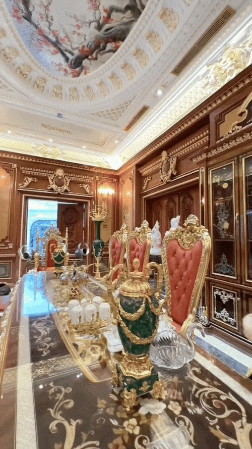 Khu vực sảnh, phòng khách và bàn ăn có rất nhiều đồ trang trí bằng ngọc, đá quý vì đó là sở thích của chồng Bích Ngân. Nhiều món đồ nội thất được 2 vợ chồng sang nước ngoài tuyển chọn, mời đội ngũ thi công và lắp đặt về Việt Nam làm việc.