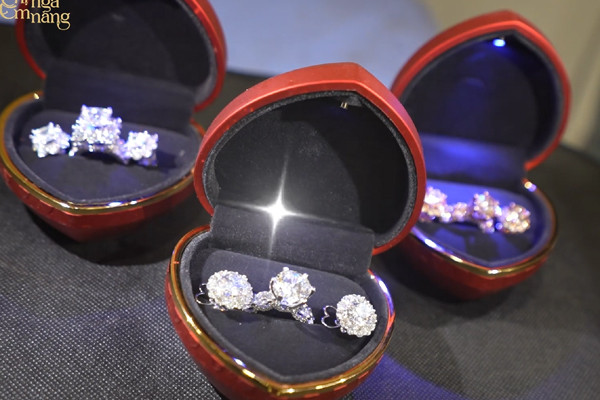 Cô khoe nhẫn kim cương có giá trị lớn.